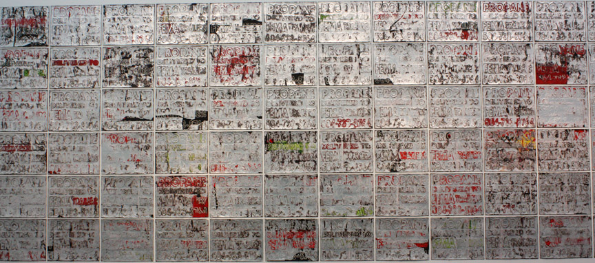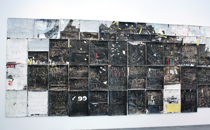 The wall opposite the entry wall with the bench was an existing, curved wall which was squared-off on the interior with a sculptural framework of thin pieces of metal and wood.